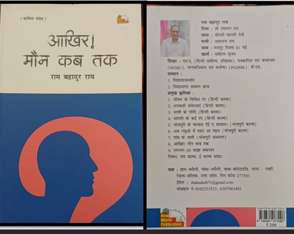 रामबहादुर राय का काव्य-संग्रह “आख़िर मौन कब तक” समकालीन हिंदी कविता में सामाजिक चेतना और वैचारिक हस्तक्षेप का सशक्त उदाहरण बनकर सामने आया है। न्यू वर्ल्ड पब्लिकेशन से प्रकाशित यह कविता-संग्रह अपने शीर्षक की तरह ही पाठक से सीधा और असहज प्रश्न करता है। कवि मौन को स्वीकार नहीं करता, बल्कि उसे चुनौती देते हुए समाज, सत्ता और व्यवस्था की निष्क्रियता पर तीखा प्रहार करता है।