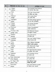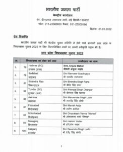 लखनऊ। उत्तर प्रदेश विधानसभा चुनाव 2022,(Uttar Pradesh Assembly Election 2022) के लिए भारतीय जनता पार्टी(BJP) ने शुक्रवार को 85 उम्मीदवारों(candidates) की तीसरी सूची जारी की है. जिसमें हाल ही में भाजपा में शामिल हुए आईपीएस अधिकारी असीम अरुण को कन्नौज सदर से टिकट दिया है. वहीं, भाजपा छोड़कर गए रोशन लाल की सीट तिलहर पर सलोना कुशवाहा को टिकट दिया गया है. उम्मदीवारों की सूची भाजपा के दिल्ली से केंद्रीय कार्यालय ने जारी की है.