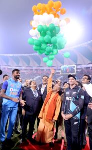 बेल बजाकर सीएम योगी ने किया भारत-न्यूजीलैंड मैच का शुभारंभ