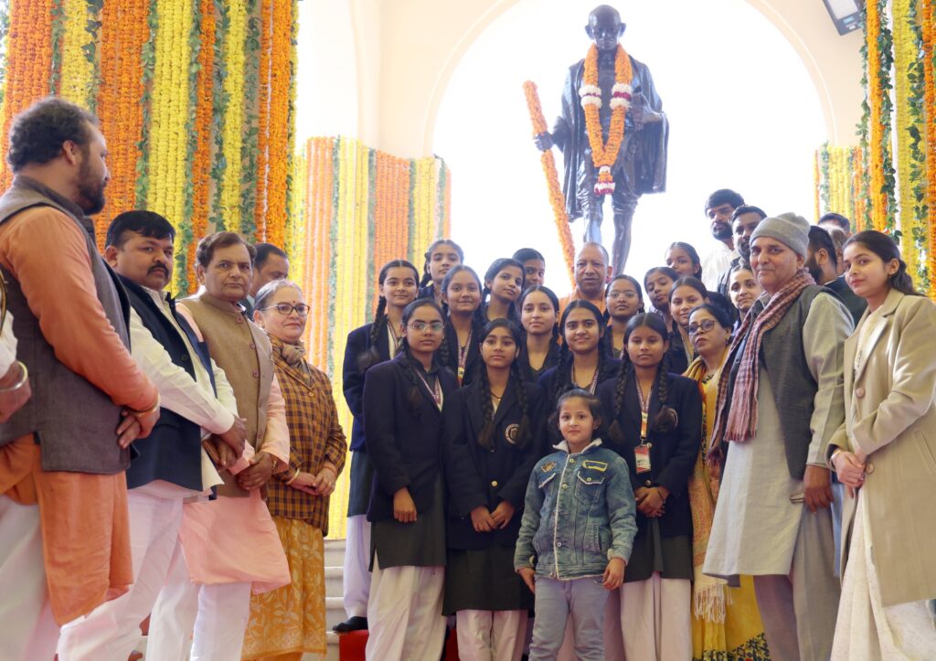 सीएम योगी ने बच्चों के साथ स्वारांजलि में हिस्सा लिया। इस दौरान बच्चों ‘रघुपति राघव राजाराम…’, वैष्णव जन तो तेने कहिये जे पीड़ परायी जाणे रे…’ जैसे गीतों को मधुर स्वर में प्रस्तुत किया। कार्यक्रम के बाद सीएम योगी ने बच्चों के साथ फोटो भी खिंचाई। इस दौरान महापौर सुषमा खर्कवाल, विधायक नीरज बोरा, राजेश्वर सिंह, अमरेश कुमार, विधान परिषद सदस्य लाल जी प्रसाद निर्मल आदि गणमान्य लोगों ने भी बापू को अपनी श्रद्धांजलि अर्पित करते हुए उनकी प्रतिमा पर पुष्पांजलि अर्पित की है