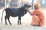 मंदिर की गोशाला में सीएम योगी ने की गोसेवा