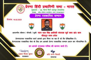 मदन पाल सिंह अर्कवंशी को मिला प्रेरणा पत्रकारिता सम्मान