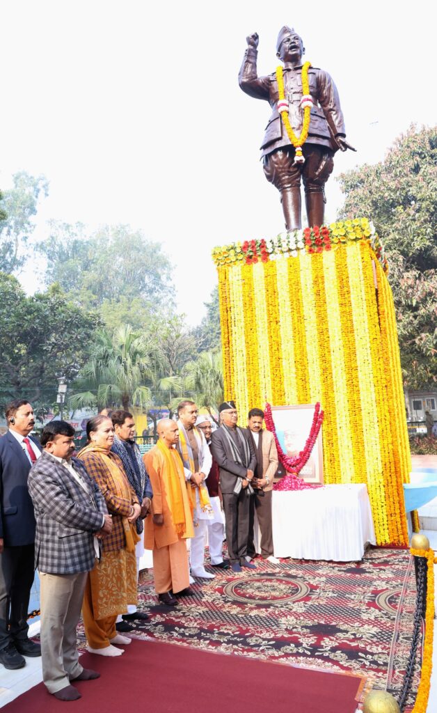 मुख्यमंत्री योगी आदित्यनाथ ने कहा कि आज हम नेताजी की पावन जयंती को पराक्रम दिवस के रूप में मना रहे हैं। भारत माता के इस महान सपूत ने अपने व्यक्तित्व और कृतित्व से आजादी के आंदोलन को नई दिशा दी। नेताजी का नाम हर भारतवासी के लिए गर्व और प्रेरणा का प्रतीक है। उन्होंने कहा कि वर्ष 2021 में प्रधानमंत्री नरेंद्र मोदी ने नेताजी के योगदान को सम्मानित करते हुए 23 जनवरी को ‘पराक्रम दिवस’ के रूप में मनाने का निर्णय लिया। यह निर्णय नेताजी के प्रति देश की कृतज्ञता का प्रतीक है।