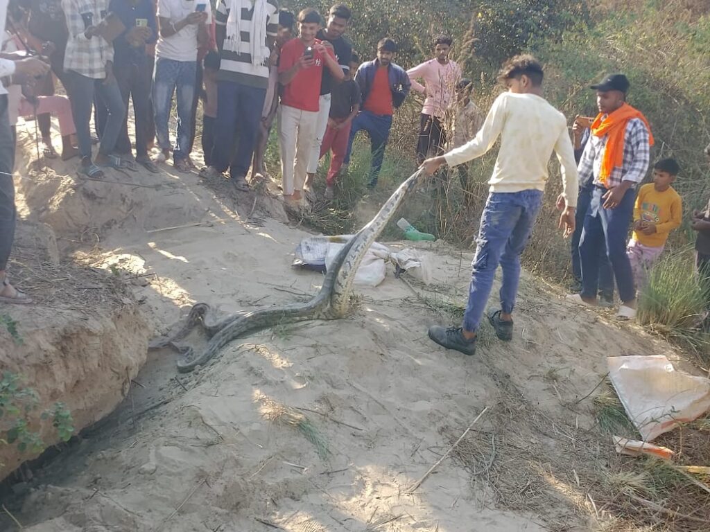 चार अजगरों के मिलने से दहशत, दो घंटे की रेस्क्यू करने के बाद चार अजगरों को टीम ने पकड़ा