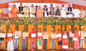 सीएम योगी ने कहा कि प्रधानमंत्री नरेंद्र मोदी के नेतृत्व में डबल इंजन की सरकार पूरी प्रतिबद्धता, पारदर्शिता और ईमानदारी से काम कर रही है. समाज के हर तबके को बिना भेदभाव शासन की योजनाओं का लाभ मिल रहा है. पीएम मोदी ने 2014 में सबका साथ, सबका विकास का जो मंत्र दिया था, वह आज प्रदेश में मूर्त रूप में नजर आता है. मुख्यमंत्री ने कहा कि वर्तमान में प्रदेश के एक करोड़ परिवारों को प्रतिमाह एक हजार रुपये की दर से वृद्धा, निराश्रित, दिव्यांग पेंशन का लाभ मिल रहा है. 15 करोड़ लोगों को कोरोना काल से मुफ्त राशन की सुविधा मिल रही है.