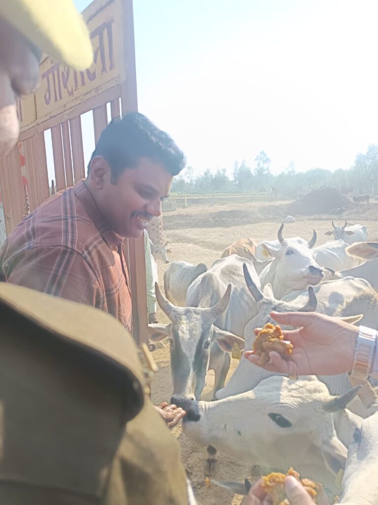 निरीक्षण के दौरान, जिलाधिकारी राजा गणपति आर गौशाला की व्यवस्थाओं से संतुष्ट दिखे। उन्होंने स्वयं गौवंशों को गुड़ खिलाया।