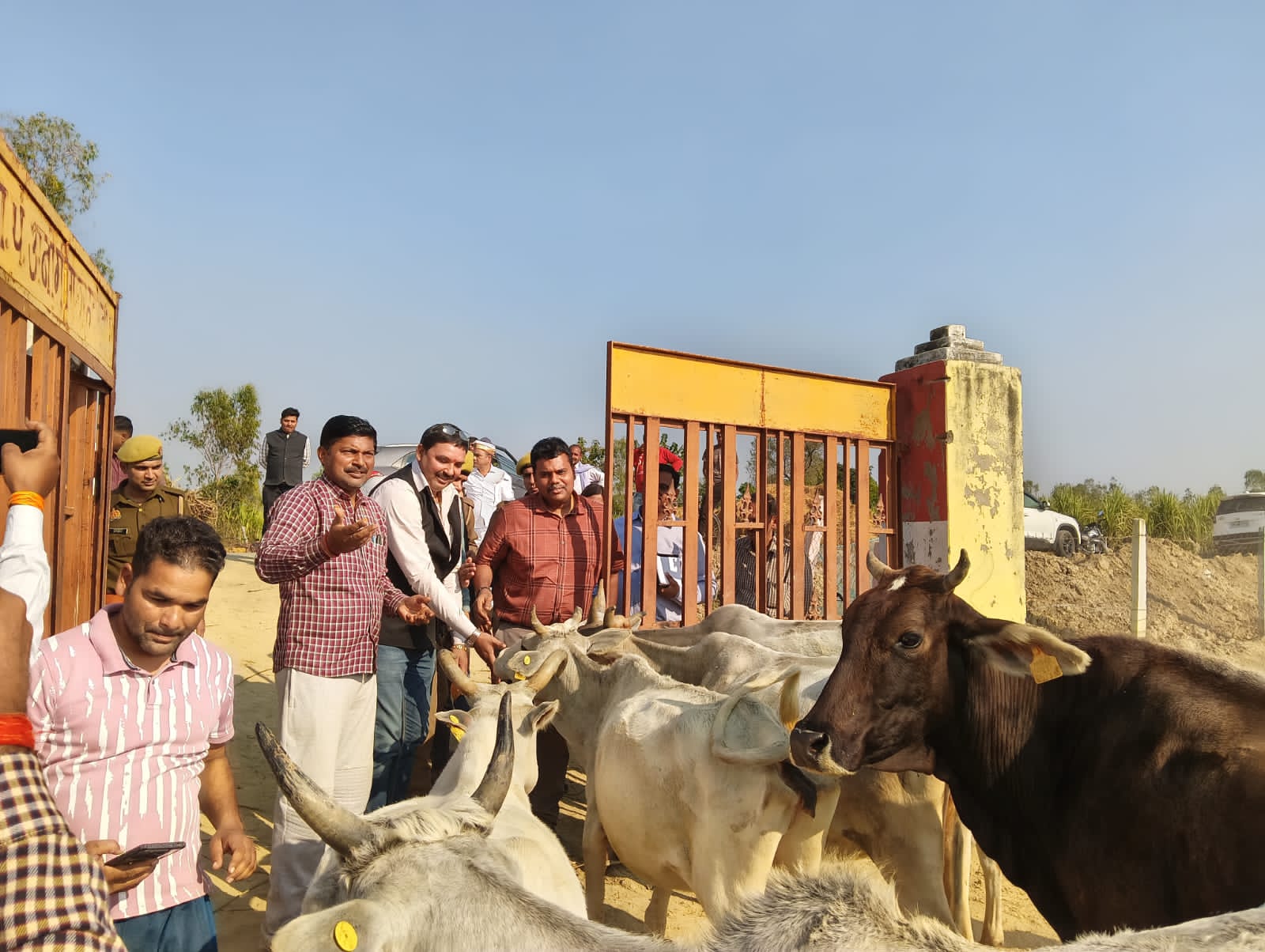 सीतापुर। जिलाधिकारी राजा गणपति आर ने नैमिषारण्य क्षेत्र में सड़क निरीक्षण के दौरान संदना थाना क्षेत्र स्थित अस्थाई गौशाला अनोगी का औचक दौरा किया। इस दौरान उन्होंने गौवंशों को गुड़ खिलाया और व्यवस्थाओं का जायजा लिया।